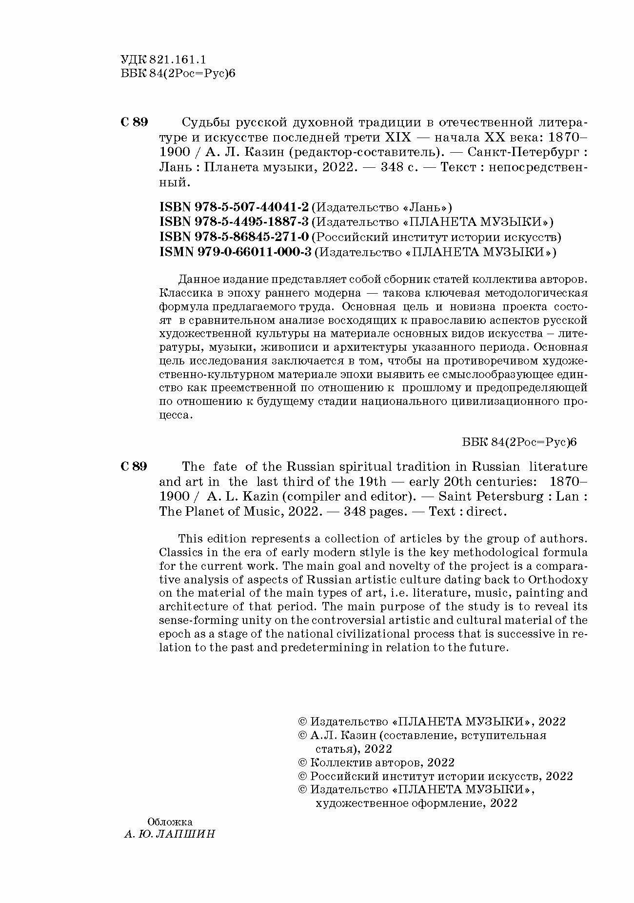 Судьбы русской духовной традиции в отечественной литературе и искусстве последней трети XIX века (Белоножкин Алексей Евгеньевич, Володихин Дмитрий Михайлович, Гладкова Ольга Игоревна); Планета музыки, 2022