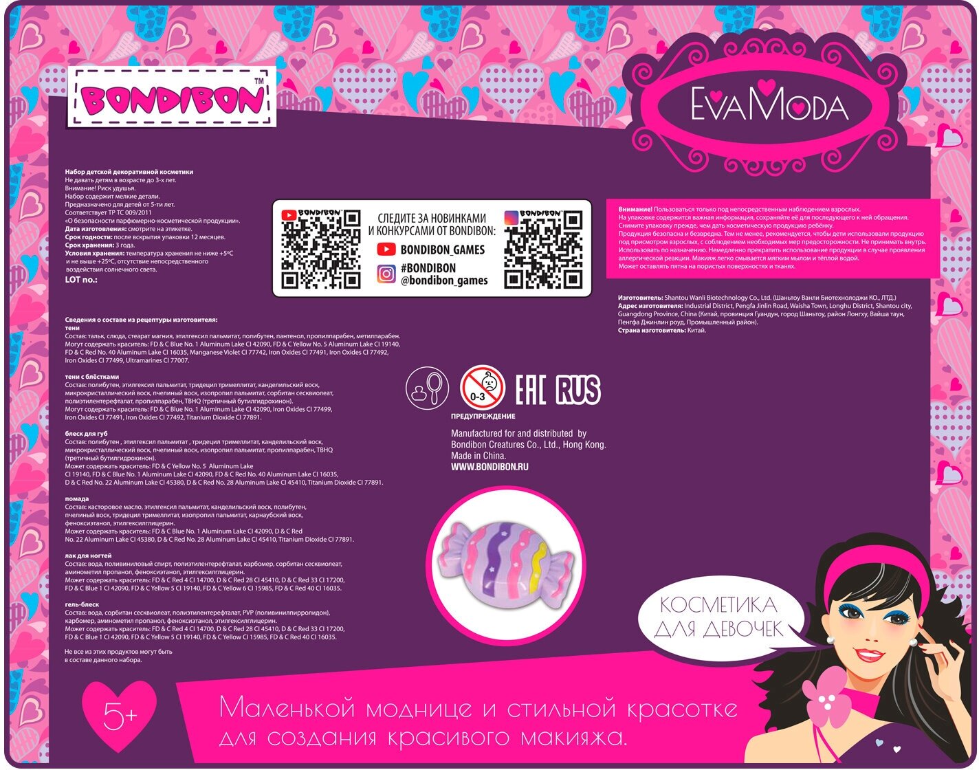 Подарите юной леди незабываемые эмоции вместе с набором детской декоративной косметики в косметичке «Конфетка» от Eva Moda Bondibon.