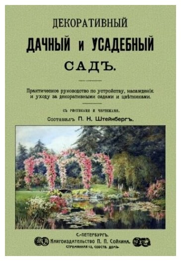 Репринт со 2-го издания. СПб. 1911. Практическое руководство по устройству, насаждению и уходу за декоративными садами и цветниками. С многочисленными рисунками, планами садов и цветников. Павел Николаевич Штейнберг (1867-1942) - профессор Петроградского агрономического института, автор книг по садоводству и огородничеству. До 1917 года был редактором журнала "Прогрессивное садоводство и огородничество". Доктор сельскохозяйственных наук, известный учёный, эрудит и энциклопедист. Написал множество статей и составил свыше ста пятидесяти книг, по которым учились миллионы землевладельцев.