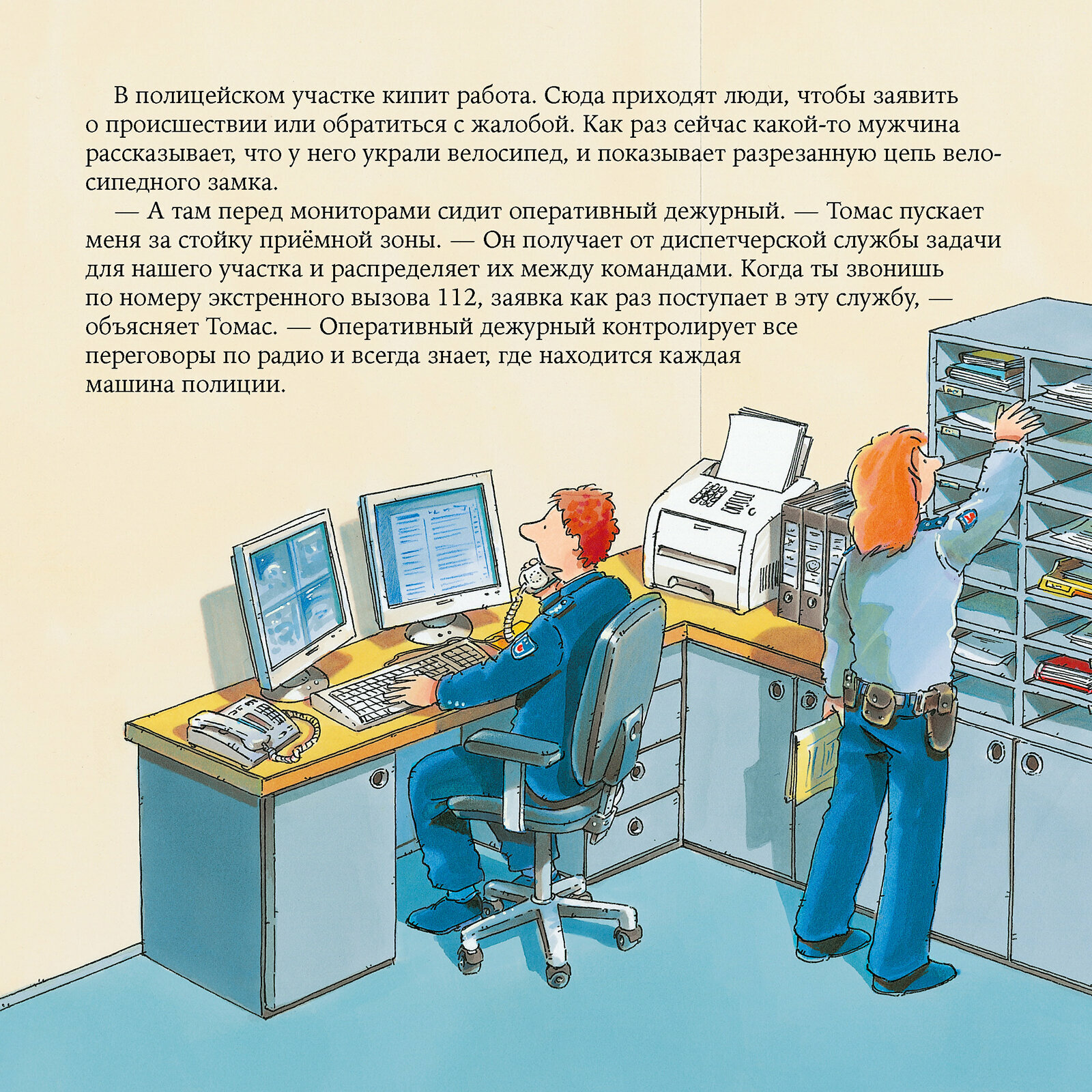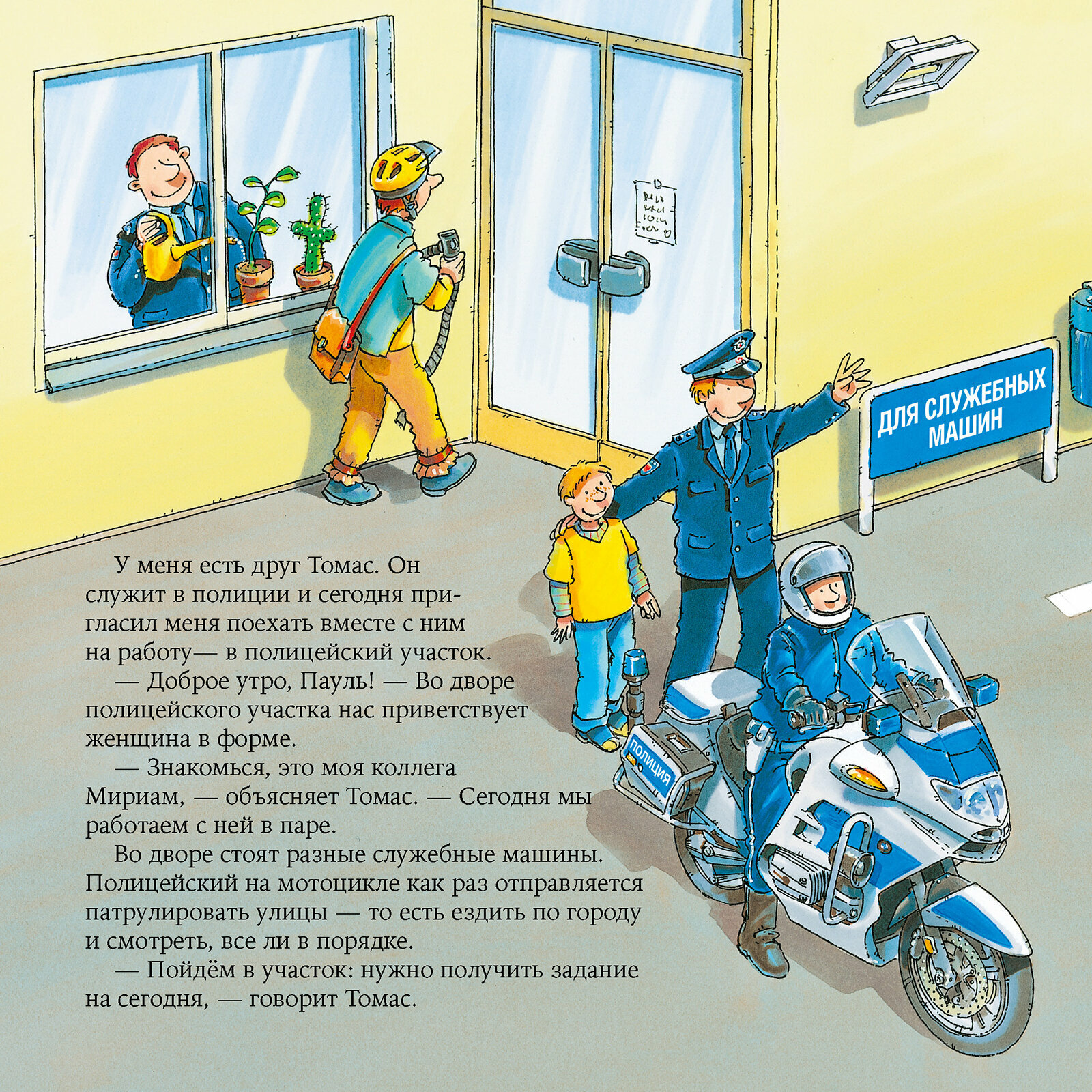 В мире много разных профессий! Детям каждая кажется интересной и удивительной. Взять, к примеру, полицейского. Он следит за порядком, ловит преступников и может прийти на помощь каждому, кто в ней нуждается. Один день из жизни сотрудника полиции познакомит дитей с устройством полицейского участка и работой разных подразделений и расскажет, зачем полицейскому велосипед и мигалка. Подходит для чтения с ребятами от четырех лет.