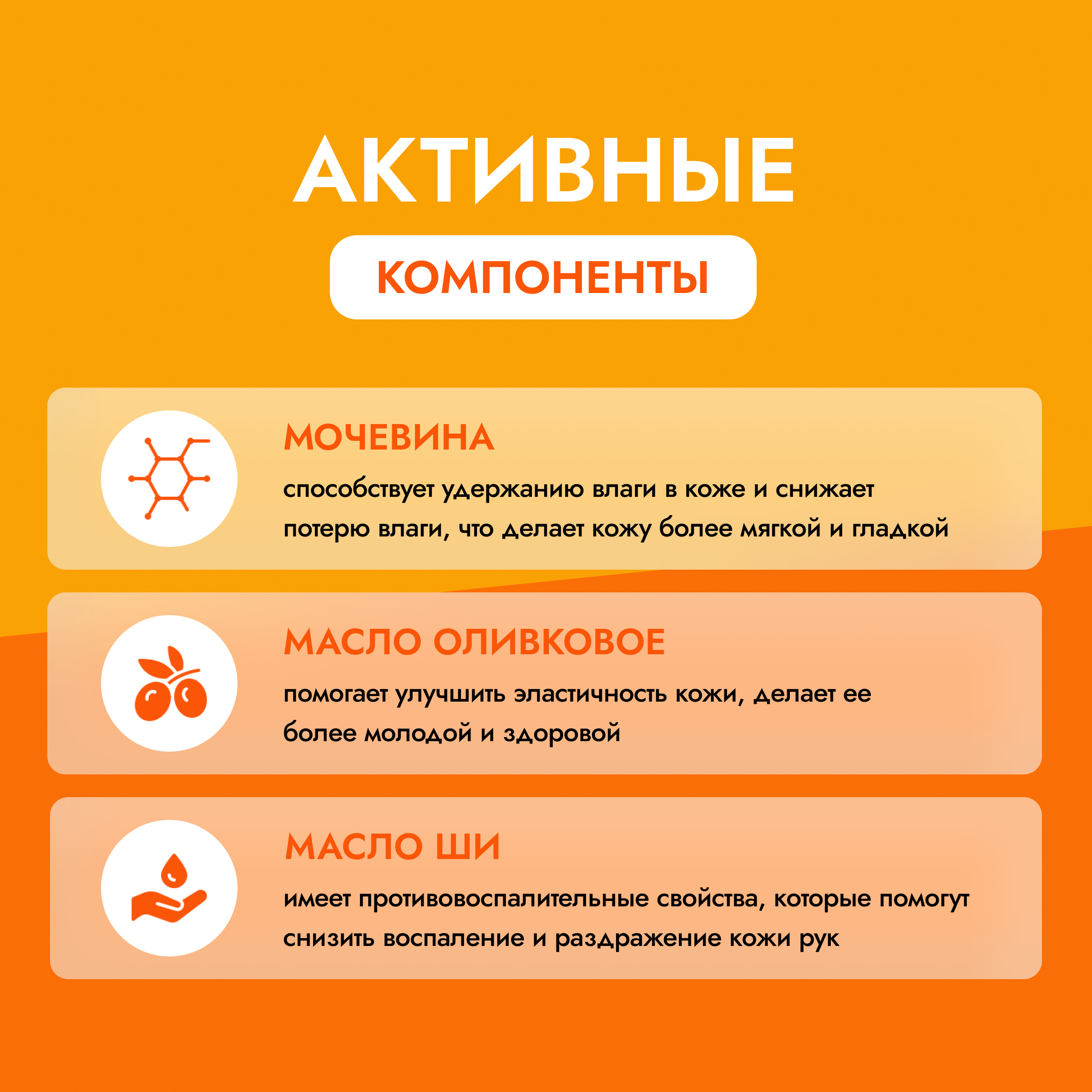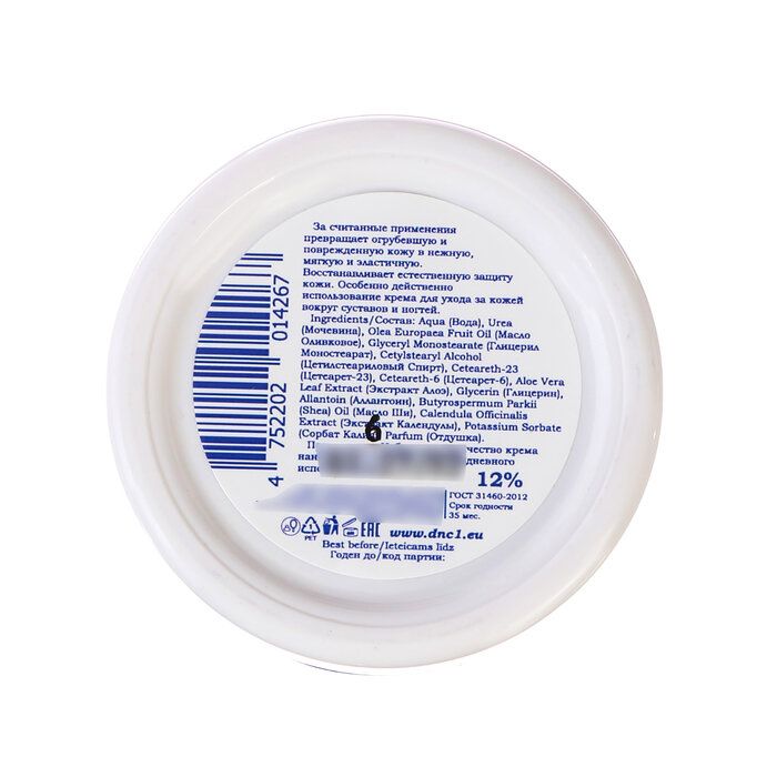 | Состав | Aqua (Вода), Urea (Мочевина), Olea Europaea Fruit Oil (Масло Оливковое), Glyceryl Monostearate (Глицерил Моностеарат), Cetylstearyl Alcohol (Цетилстеариловый Спирт), Ceteareth-23 (Цетеарет-23), Ceteareth-6 (Цетеарет-6), Aloe Vera Leaf Extract (Экстракт Алоэ), Glycerin (Глицерин), Allantoin (Аллантоин), Butyrospermum Parkii (Shea) Oil (Масло Ши), Calendula Officinalis Extract (Экстракт Календулы), Potassium Sorbate (Сорбат Калия), Parfum (Отдушка) |