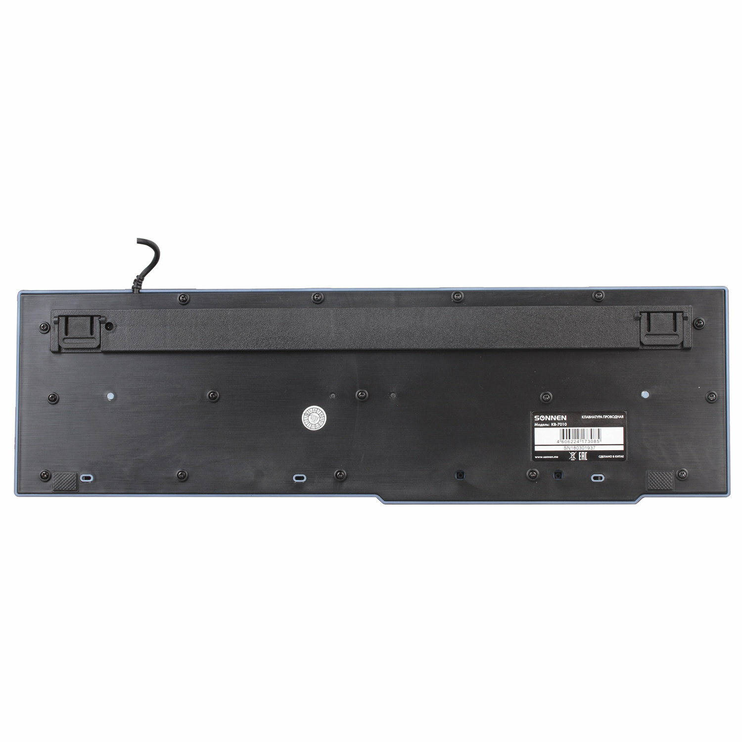 Клавиатура SONNEN KB-7010 создаст отличные условия для работы и развлечений. Благодаря мембранному механизму клавиатура работает практически бесшумно, поэтому не создаст неудобств для сидящих рядом с Вами в офисе сотрудников.Имеет классическую раскладку - 104 клавиши. Корпус выполнен из ударопрочного ABS-пластика черного цвета. Снабжена RGB-подсветкой, пользователь может выбрать один из 3-х цветов (красный, синий, фиолетовый), либо отключить подсветку. С помощью "F" клавиш можно использовать дополнительные мультимедийные функции, которые можно включать, используя функциональные клавиши клавиатуры (F1 - F12). Размер клавиатуры - 145x448x32. Подключение через USB-разъем. Длина кабеля - 1,2 м. Вес - 0,682 кг.Клавиатура SONNEN KB-7010 позволит удобно и аккуратно организовать рабочее место. Покупайте компьютерные аксессуары высокого качества по доступной цене в нашем интернет-магазине!Обзоры 1 Как выбрать клавиатуру для работы в офисе и дома? Основные виды клавиатур для компьютераОт внутреннего устройства клавиатуры зависит удобство использования и скорость печати.Какую клавиатуру лучше выбрать?Основные типы клавиатурПользовательские характеристикиЧитайте в этом материалеПодробнееИнтерфейсы подключения - USB. Тип клавиатуры - мембранная. Вид клавиатуры - классическая. Общее количество клавиш - 104. Полноразмерныe клавиши - "BackSpace", "Enter", "пробел". Программируемые клавиши - нет. Подсветка клавиш - да. Разъемы для наушников и микрофона - нет. Эргономичный дизайн - нет. Длина кабеля - 1.3 м. Материал корпуса - пластик. Высота - 32 мм. Ширина - 448 мм. Глубина - 145 мм. Цвет - черный. Вес - 654 г. Производитель - Китай Вес с упаковкой - 664 г Размер в упаковке - 3.4x45.1x14.6 см Сервисное обслуживание Гарантия 12 месяцев.