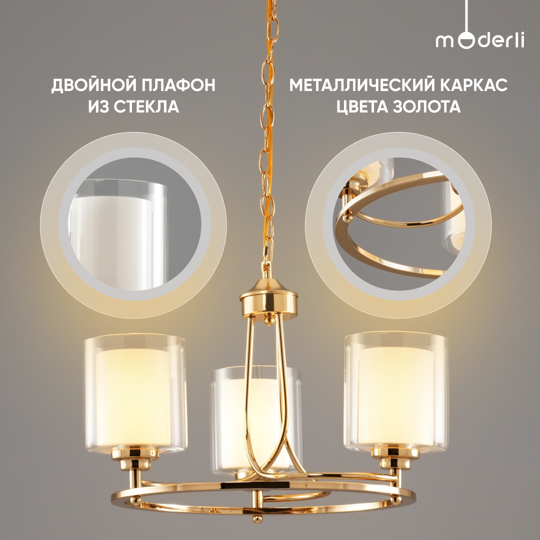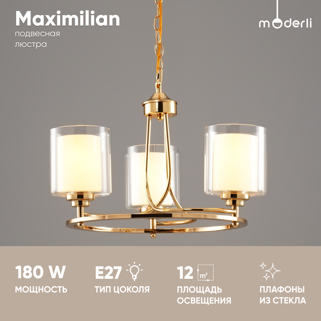 Люстра подвесная Moderli V2524-3P Maximilian 3E2760W хром белый прозрачный Hoff