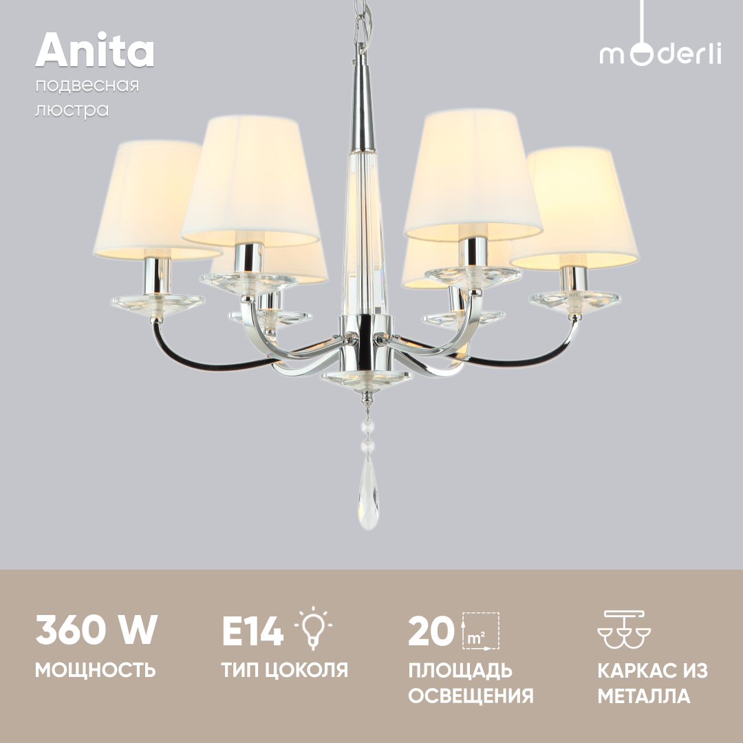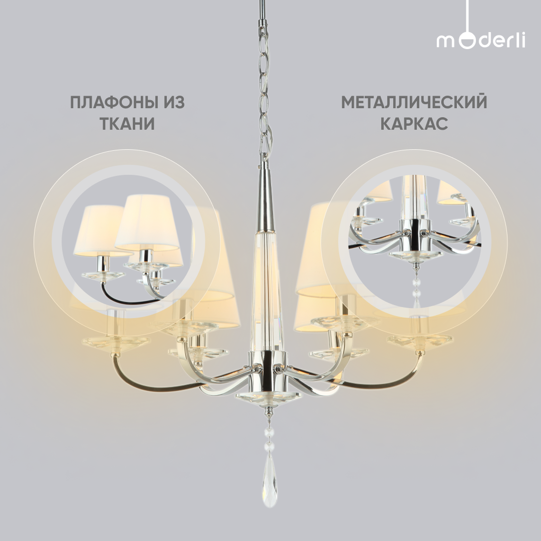 Люстра подвесная Moderli V2662-8P Inna 8E1460W хром молочно белый Hoff Claim