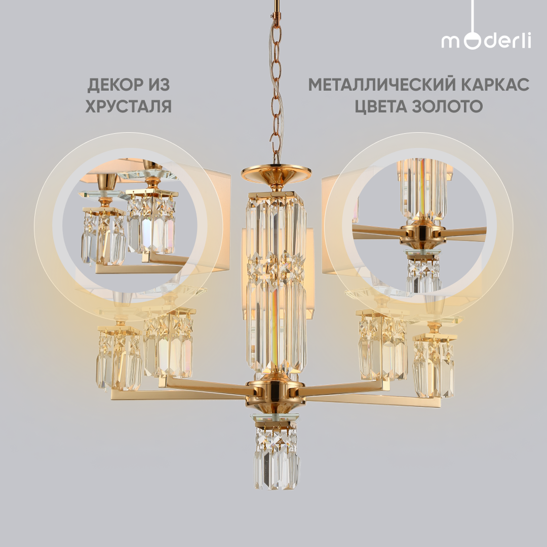 Сервис сравнения цен СкидкаГИД предлагает сравнить цены на товар «Люстра подвесная Moderli V2691-5P Slam 5*E14*60W золотой молочно белый Hoff»