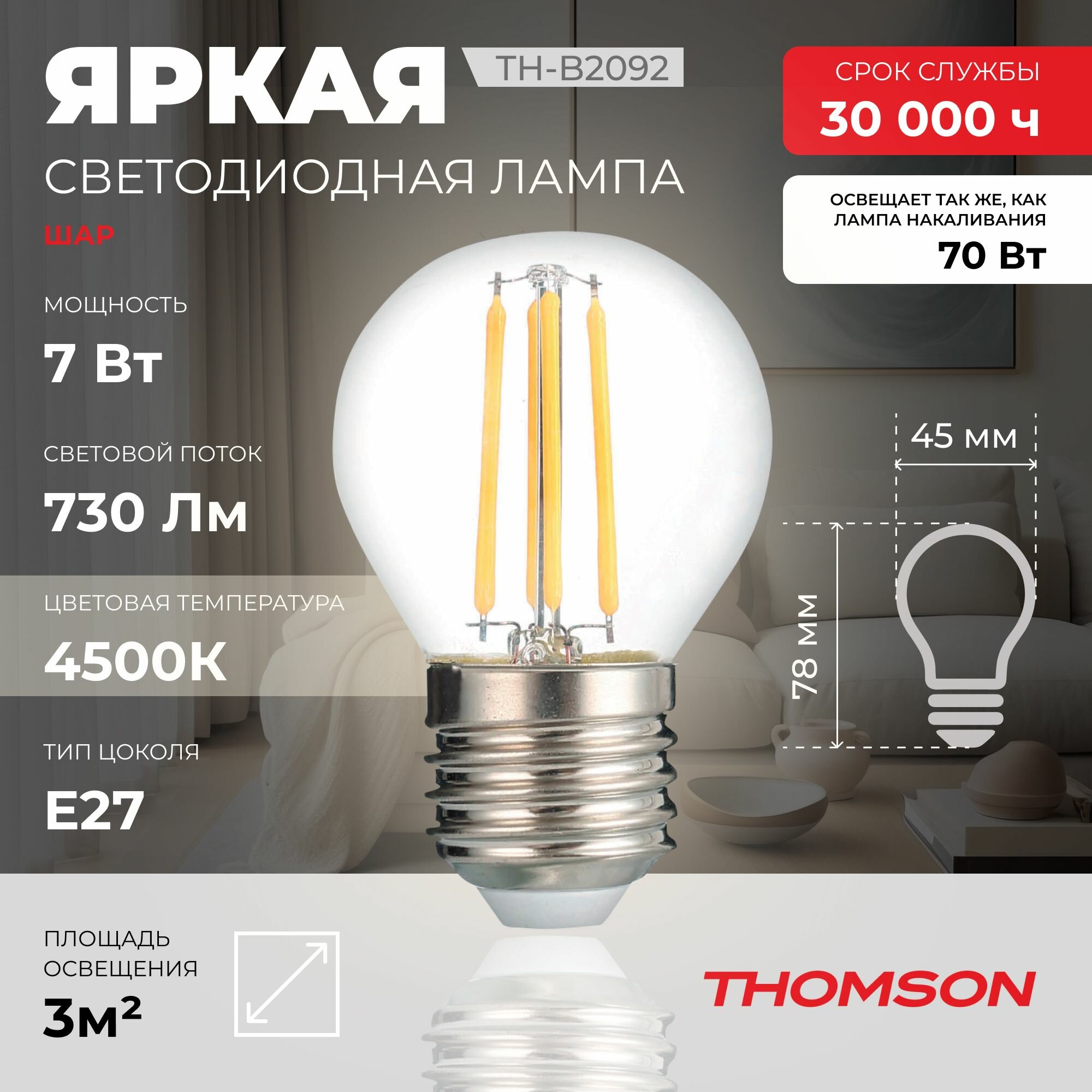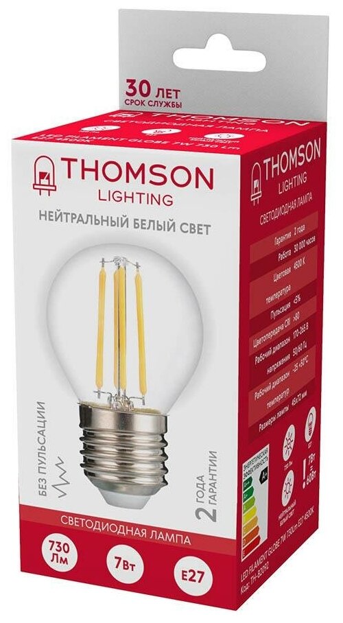 Сервис сравнения цен СкидкаГИД предлагает сравнить цены на товар «Лампа светодиодная филаментная Thomson E27 7W 4500K шар прозрачная TH-B2092»