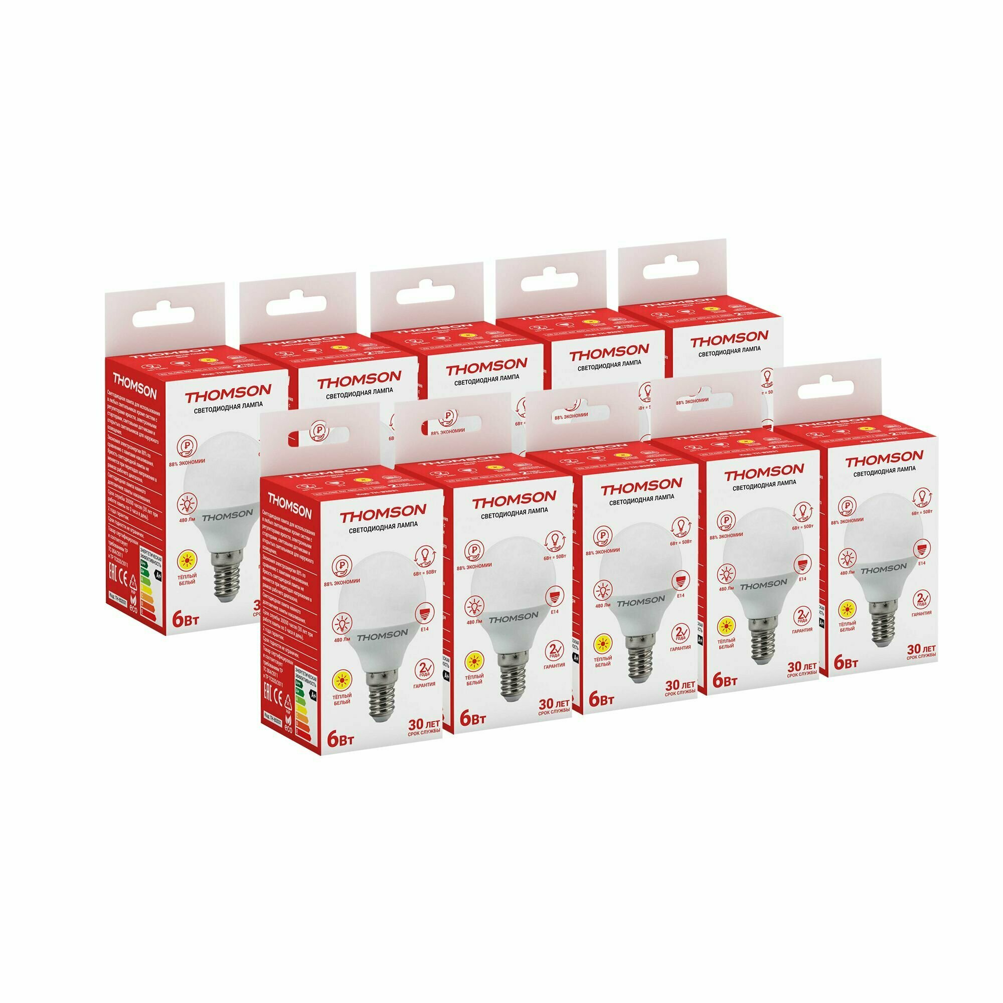 Лампочка светодиодная Thomson Globe от французского бренда Thomson имеет белую колбу формы шар. Лампочка с цоколем E14 оснащена мощностью 6W, имеет световой поток 480 lm и освещает площадь до 2 кв. м. Питание от сети 220V. Цветовая температура ? 3000К. Лампочка прослужит не менее 30000 часов.