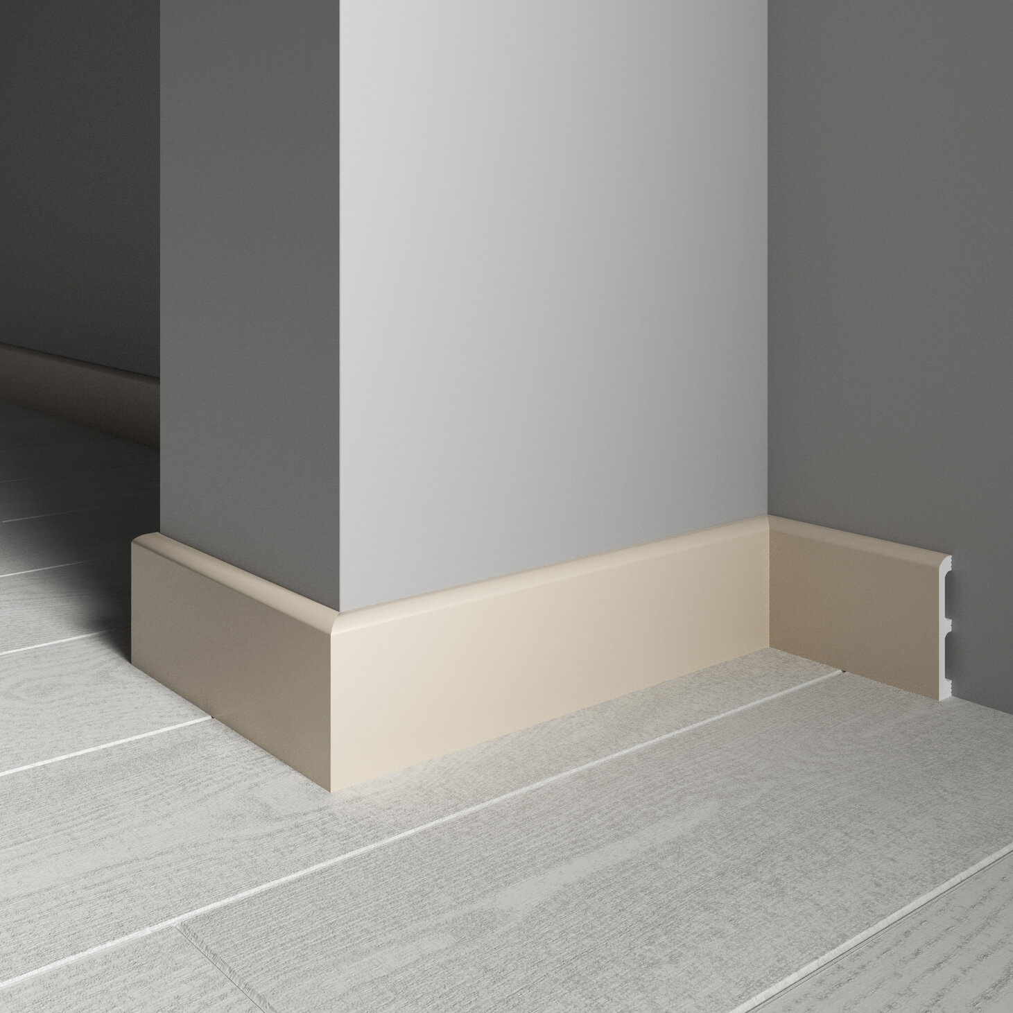 Напольный плинтус Decor-Dizayn (Декор-Дизайн) не требует дополнительной покраски.Изготовлен из дюрополимера (полистирол высокой плотности) и обладает рядом преимуществ:Устойчив к влажной среде и намоканию, что позволяет использовать плинтус в том числе в ванной комнате и на кухне. Плинтус не деформируется, не разбухает, не ссыхается.Исключительная ударопрочность, стабильность материала и долговечность.Абсолютно экологичен, полностью безопасен для здоровья.Материал не подвержен влиянию плесени и грибка;Устойчив к перепаду температур;Монтаж методом запиливания без дополнительной фурнитуры (без уголков, соединителей и заглушек).