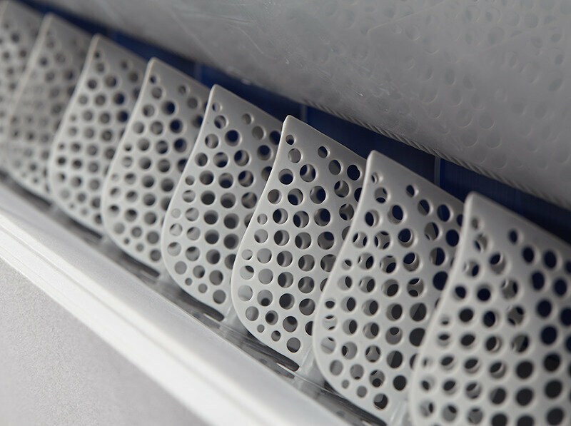Правильное и равномерное распределение воздуха в комнате обеспечивают вертикальные и горизонтальные жалюзи, движение которых можно регулировать с пульта. Жалюзи могут быть зафиксированы как в определенном положении, так и в автоматическом режиме.