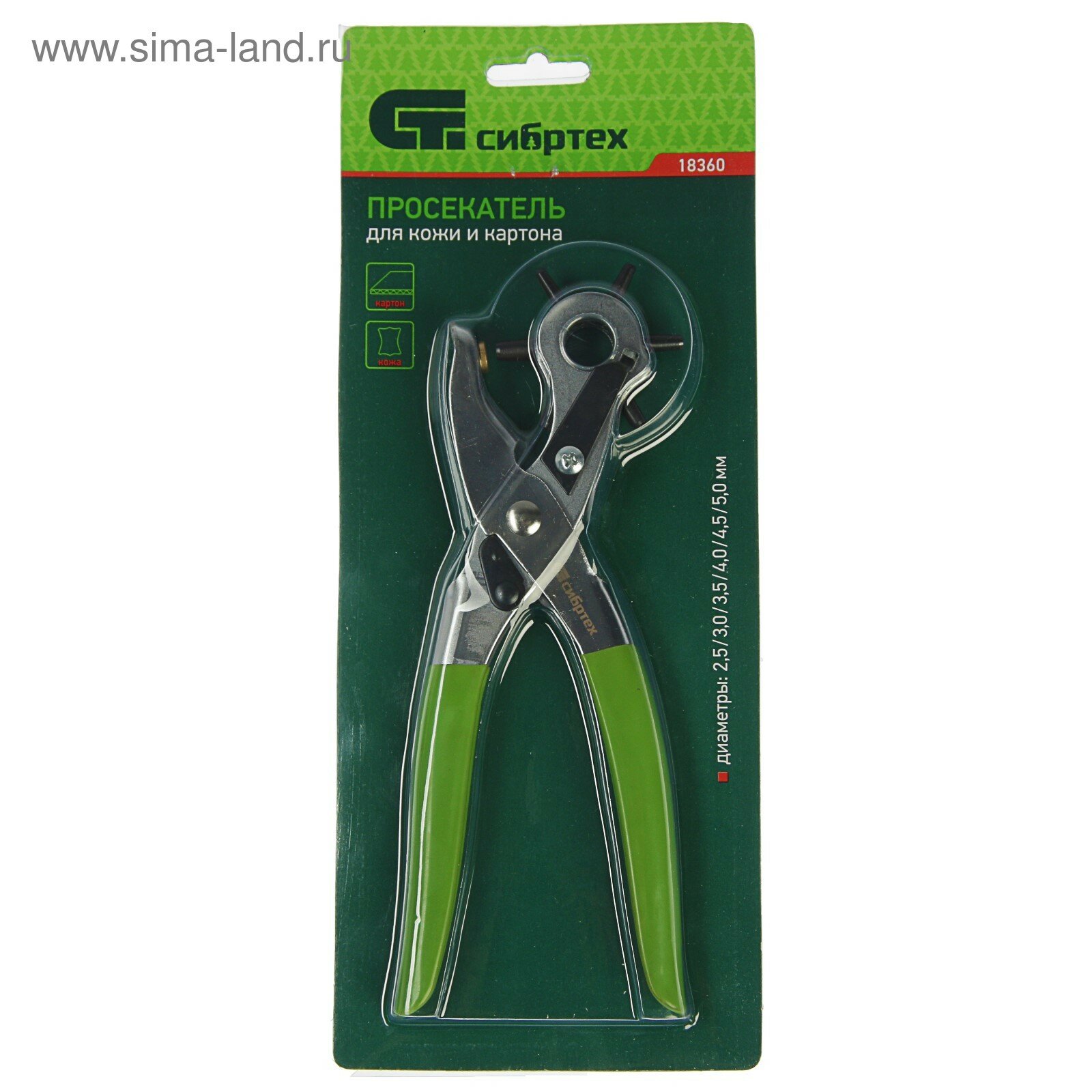 Просекатель (дырокол) торговой марки Сибртех применяется для изготовления отверстий диаметром 2.5, 3.0, 3.5, 4.0, 4.5, 5.0 мм в таких материалах, как кожа, картон, пластик, текстильные и прочие мягкие материалы (толщиной до 3 мм).
