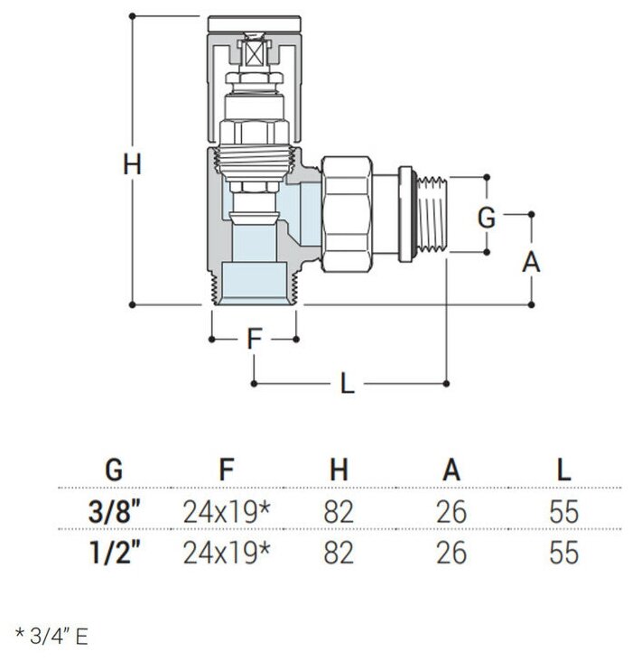Корпус: штампованная латунь CW617N - UNI EN 12165.