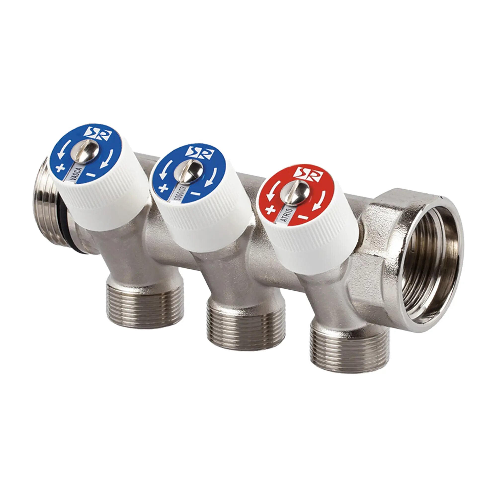 Коллектор распределительный SR Rubinetterie со встроенными клапанами 3/4х1/2 на 3 выхода (0054-2000N300)