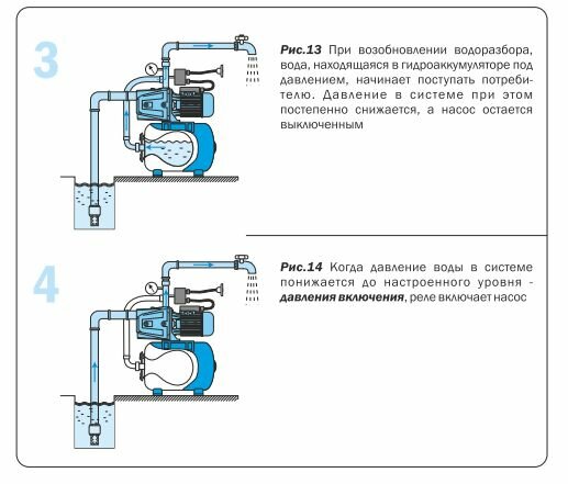 Автоматическая насосная станция включается и отключается автоматически, кроме того она осуществляет поддержание системы водоснабжения под давлением.