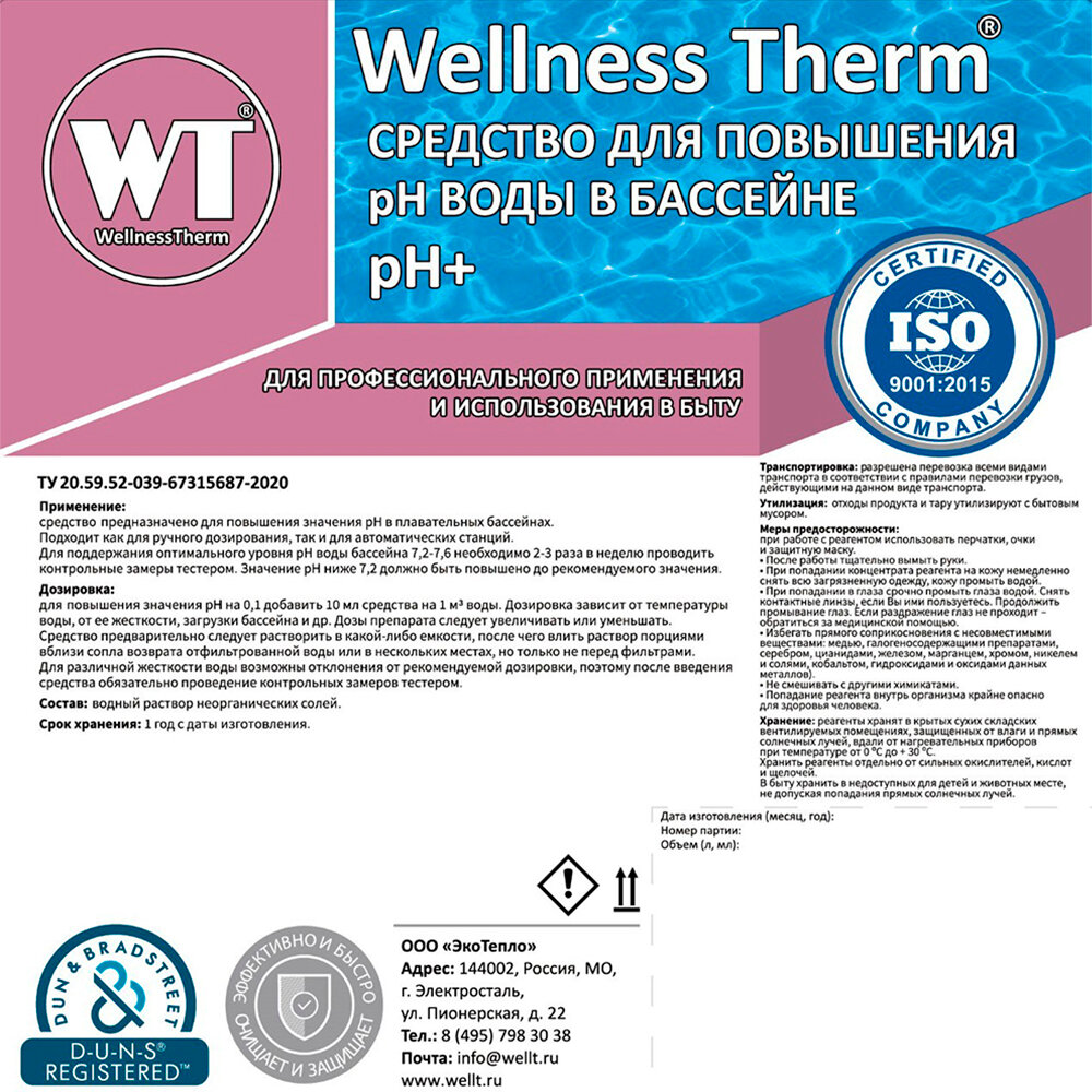 Сервис сравнения цен СкидкаГИД предлагает сравнить цены на товар «Средство Wellness Therm для повышения PH воды в бассейне (PH +) 1 л. (312705)»