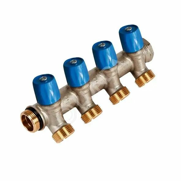 Коллектор HENCO VBS с синими вентилями 3/4"НР под евроконус 3/4" - 4xEK (VBS050504-BL)