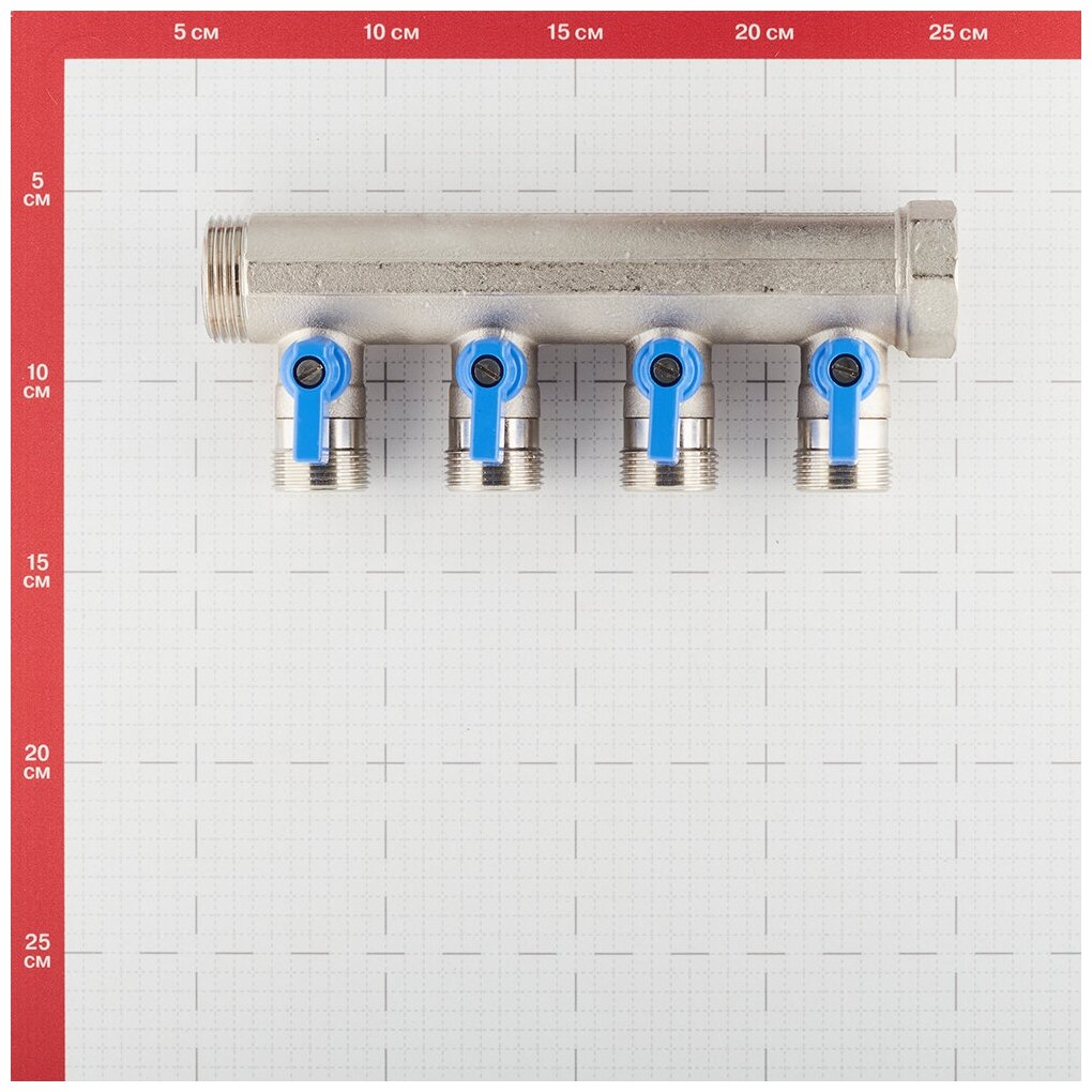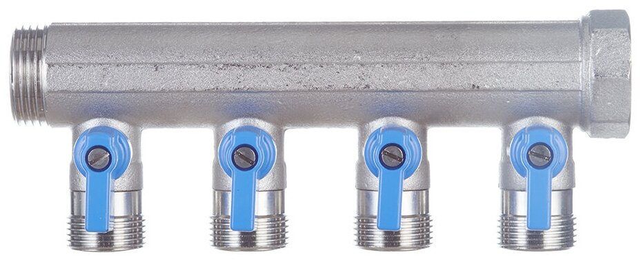 Коллектор 1" с синими шаровыми кранами 3/4"НР под евроконус 1" - 4xEK14161820 HENCO (VB060504-BLAUW)