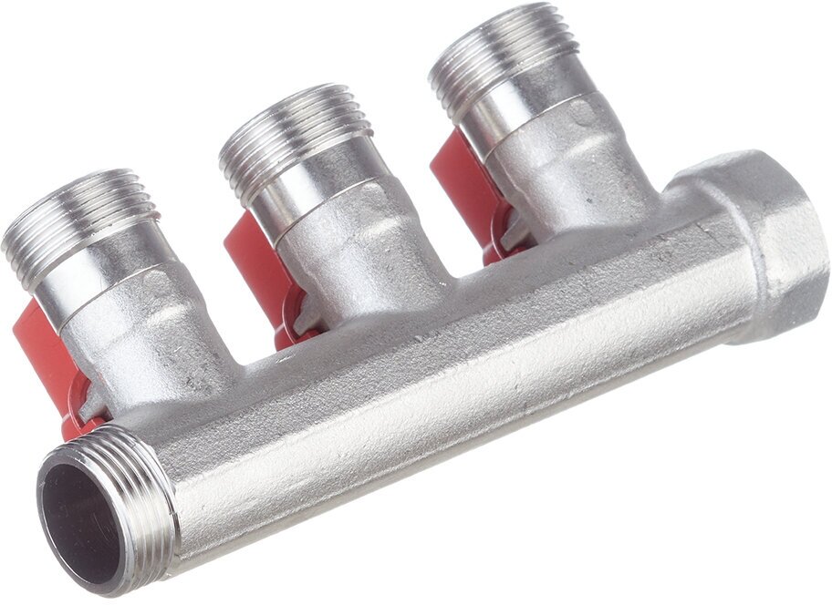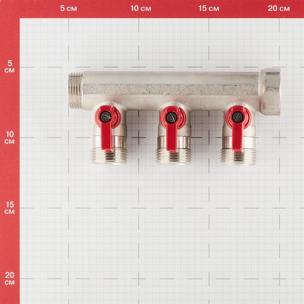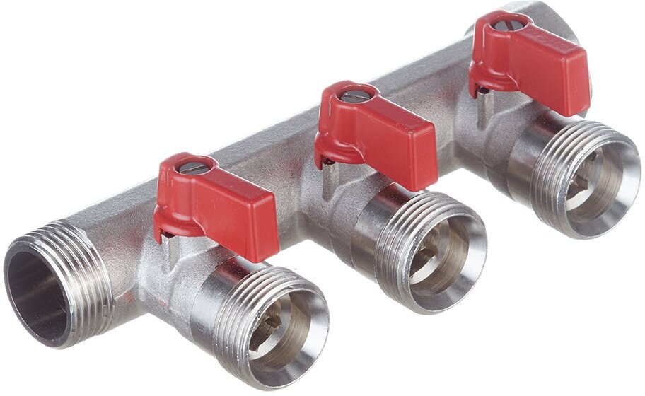 Коллектор 3/4" с красными шаровыми кранами 3/4"НР под евроконус 3/4" - 3xEK14161820 HENCO (VB050503-ROOD)