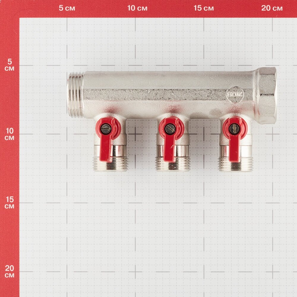 Коллектор 1" с красными шаровыми кранами 3/4"НР под евроконус 1" - 3xEK14161820 HENCO (VB060503-ROOD)