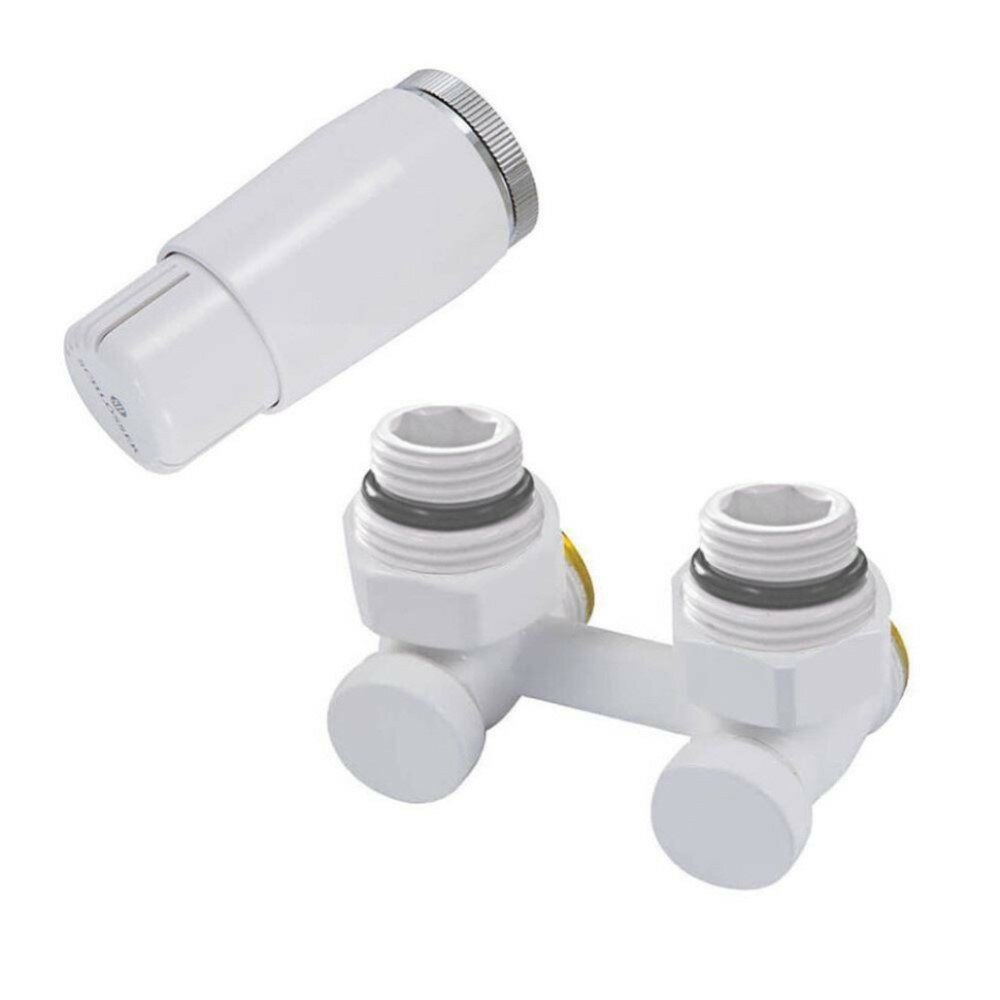 Комплект Schlosser узел нижнего подключения G 3/4 x 3/4 D=50 мм угловой с термоголовкой MINI Белый (600800056)