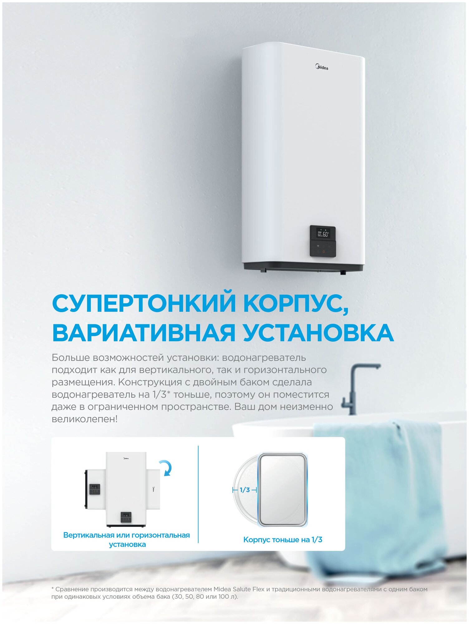 Универсальная установка (возможность установить водонагреватель в горизонтальном положении);
