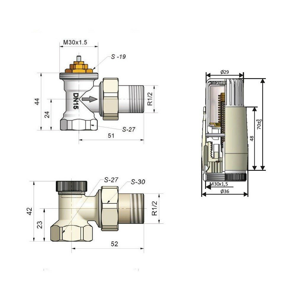| Тип | Термостатическая головка Mini, термостатический клапан, клапан обратного потока. |