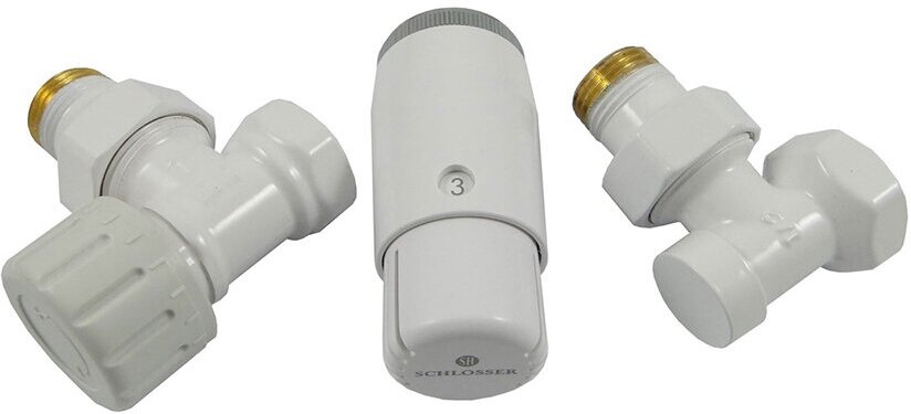 Комплект клапанов Schlosser Standard Mini угловой включает в себя: термостатическую головку Mini, термостатический клапан и клапан обратного потока. Рабочая температура 120°С. Номинальное давление 1 МРа. Теплоноситель – вода. Подключение радиатора - 1/2". Резьбовое соединение термостатической головки – М30х1,5. Цвет - Белый. Диапазон настройки температуры от 8 до 30°C.