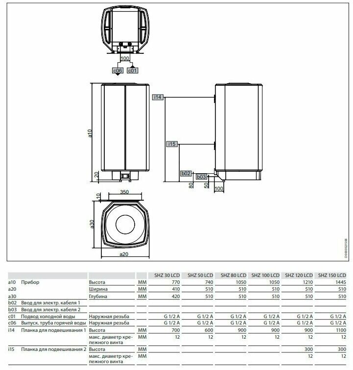 Водонагреватель Stiebel Eltron SHZ 100 LCD 1050 / 510 / 510 мм SHZ 100 LCD 231254 1.2.3.4кВт. 1050х510х510 однофазный