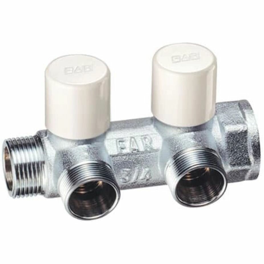 Сервис сравнения цен СкидкаГИД предлагает сравнить цены на товар «Коллектор FAR хромированный запорный проходной (ВР-НР) с 2 отводами (ТР) (FK 3860 134)»