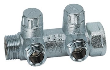 Коллектор FAR хромированный запорный проходной (ВР-НР) с 2 отводами (ТР) (FK 3860 134)