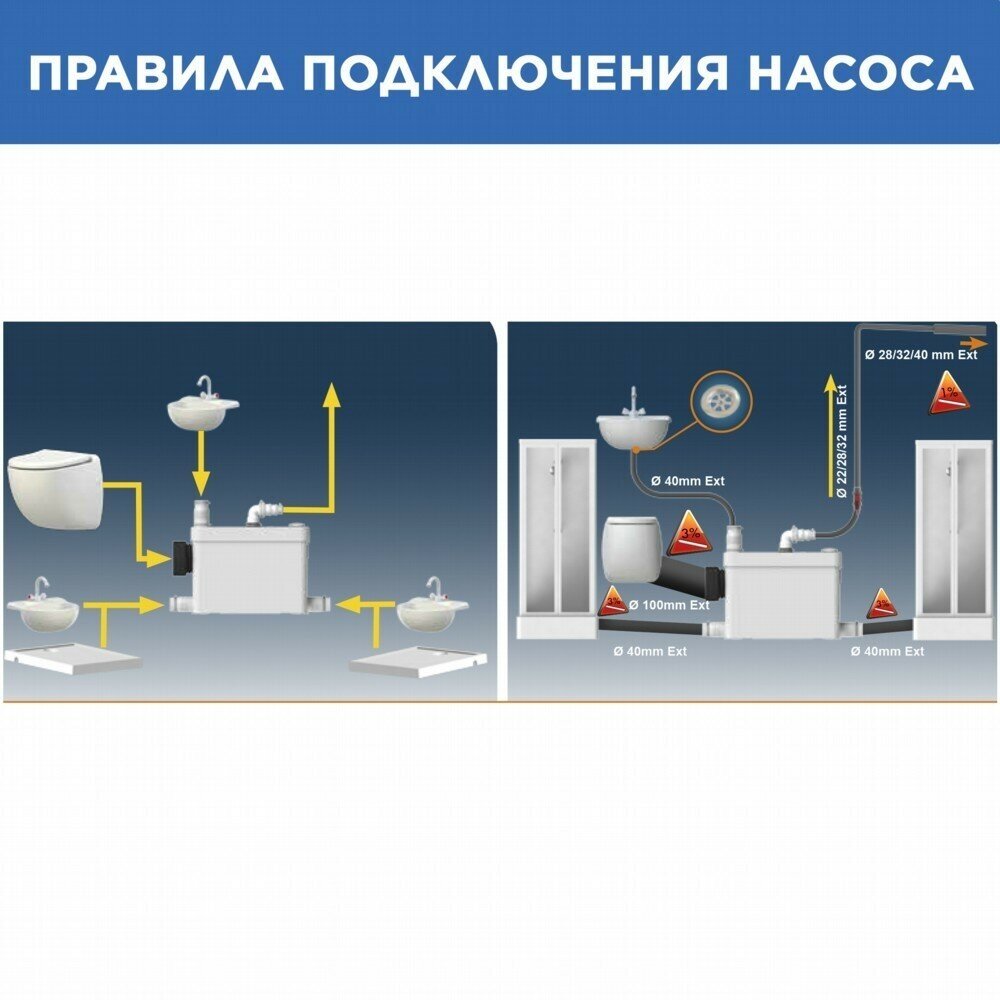 Откачивает фекальные стоки до 100 метров по горизонтали и до 5 метров по вертикали