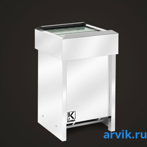 Корпус печи Karina (Карина) ECO 16 змеевик имеет современный и лаконичный дизайн, основанный на простых линиях и формах. Настройка функций электроприбора осуществляется с помощью выносного пульта управления, который можно разместить в любом удобном для вас месте. При нагреве НТЛ нагреваются две горизонтальные пластины, затем вода постепенно испаряется и создает в бане благоприятный и комфортный климат.