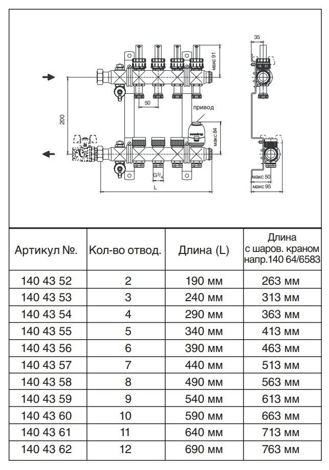 | Размер отводов | 3/4EK-M |