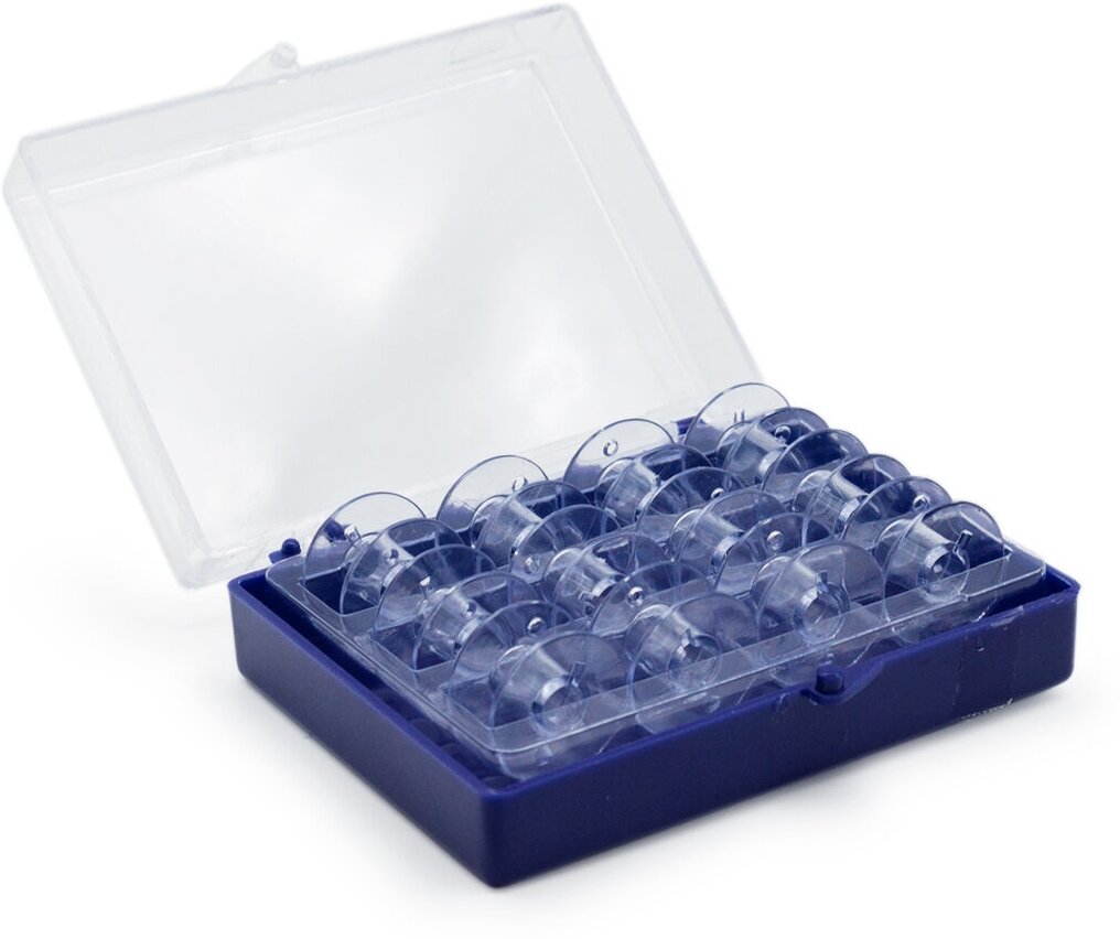 Набор из 12 пластиковых шпулек для швейных машин от бренда Prym. Шпули упакованы в удобный небольшой контейнер с прозрачной крышкой и углублениями для шпуль.Таким образом, они всегда могут быть чистыми и хорошо отсортированными рядом со швейной машиной. Крышка из прозрачного пластика всегда дает хороший обзор цветов нитей и текущего запаса ниток.Разработана немецкой компанией Prym, известным мировым лидером в производстве высококачественных принадлежностей для шитья и рукоделия. Шейте с удовольствием, радуйте модными шедеврами себя и окружающих!