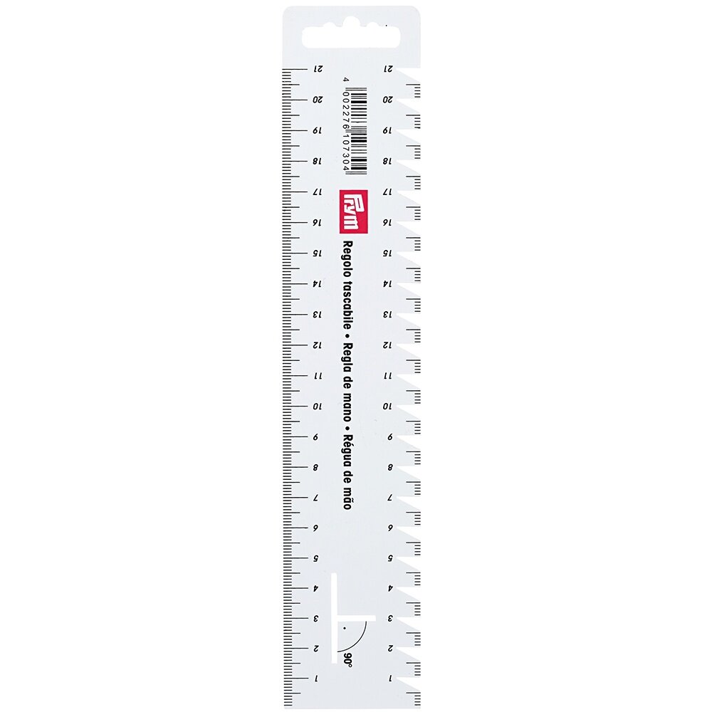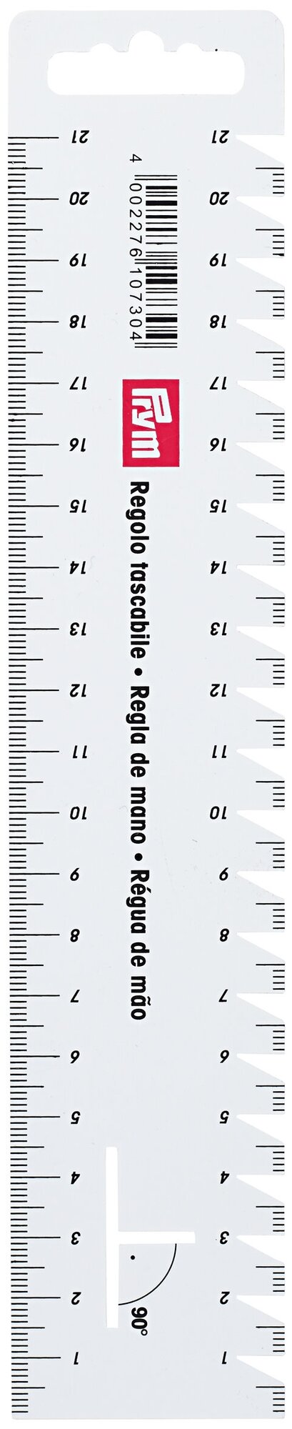 Линейка для разметки и измерения прочная и легкая, выполнена из гибкого пластика. Используется для разметки петель, нанесения надсечек на деталях из ткани, измерения, а также раскроя мелких деталей. Линейка имеет с обеих сторон абсолютно точную сантиметровую шкалу с контролем длины стежка и помощью в разметке угла в 90гр Благодаря своей гибкости линейка для разметки и измерения идеально прилегает к тканям и выкройкам и позволяет выполнять точное измерение, а благодаря дополнительным насечкам – точную разметку.Разработана немецкой компанией Prym, известным мировым лидером в производстве высококачественных принадлежностей для шитья и рукоделия. Ежедневно используя продукцию Prym, Вы ощутите заботу компании о Вашем комфорте и удобстве. Шейте с удовольствием, радуйте модными шедеврами себя и своих близких! Размер: шкала линейки 21 см.