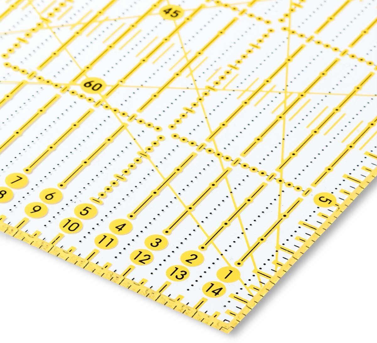 Универсальная линейка с сантиметровой шкалой и угловой разметкой 30°, 45° и 60°.