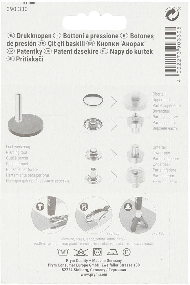390330 Prym Кнопки "Anorak" серебристые 12мм