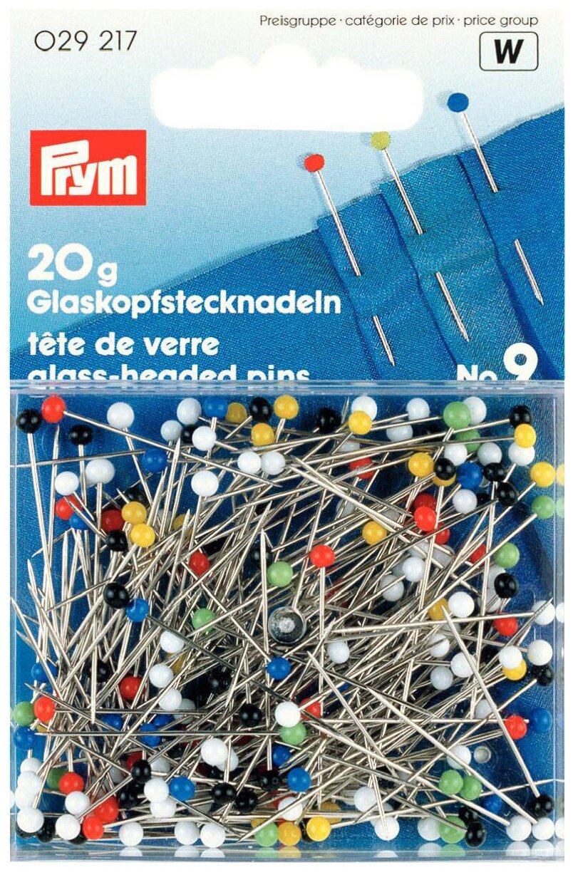 029217 Prym Булавки с разноцветными стеклянными головками 30*06мм 20г (блистер)