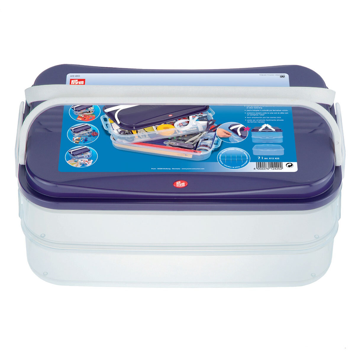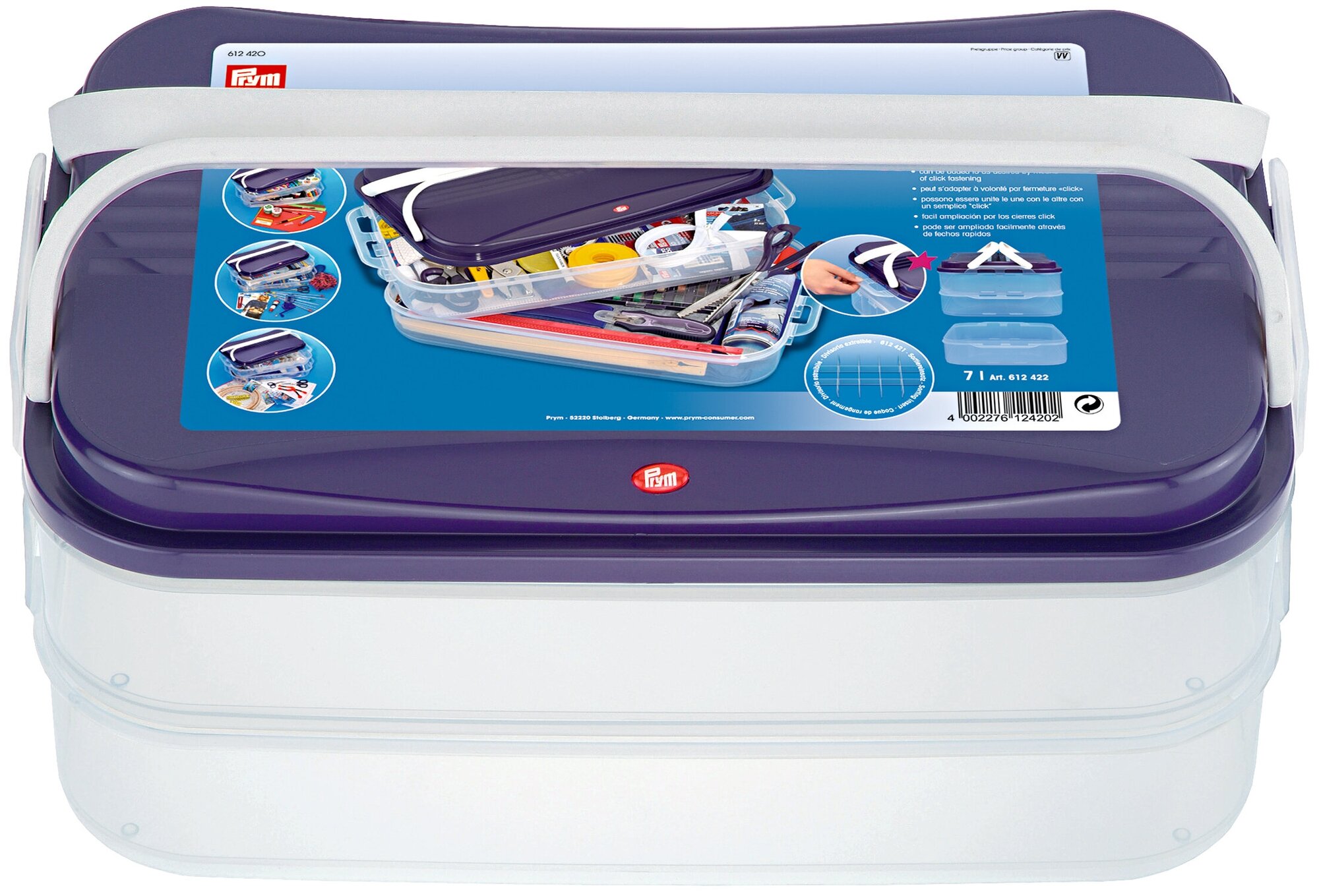 Вместительный клик-бокс для хранения различных мелочей. Состоит из 2 прозрачных модулей объемом по 7 л. Модули скрепляются между собой при помощи застежек-клипс. При желании можно добавить дополнительный модуль (приобретается отдельно, арт. 612422). Крышка бокса имеет удобные ручки.Разработано немецкой компанией Prym, известным мировым лидером в производстве высококачественных принадлежностей для шитья и рукоделия. Ежедневно используя продукцию Prym, Вы ощутите заботу компании о Вашем комфорте и удобстве. Воплощайте любую Вашу творческую идею с безупречным материалом Prym! Шейте с удовольствием, радуйте модными шедеврами себя и своих близких! Общий размер: 40x26,5x17,5 cм.