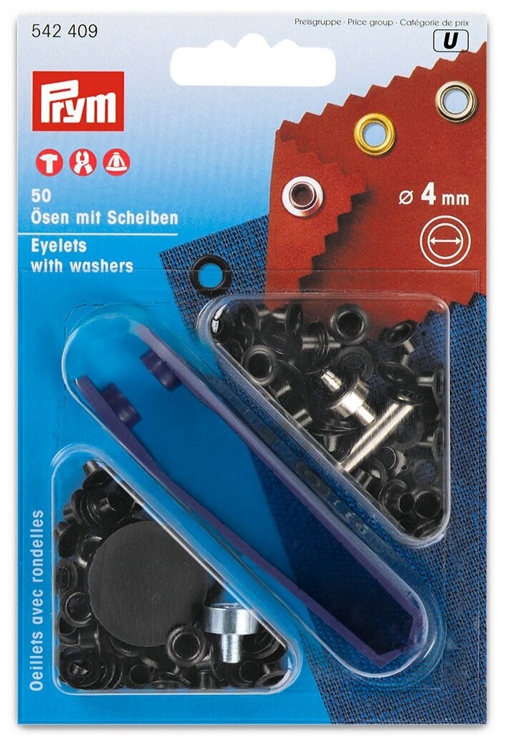 Люверсы и обратные элементы, 4 мм, серебристые Люверсы для одежды, оформления интерьера или рукоделия Включая инструменты для удобства работы Серебристая нержавеющая латунь Непришиваемая отделка? Это легко! Классические люверсы Prym могут использоваться самым различным образом и очень удобны для оформления застежек на шнурках, рукоделия, в качестве модного элемента отделки или для оформления интерьера. Нержавеющие люверсы изготовлены из латуни и доступны в различных расцветках, а также различного внутреннего диаметра. Люверсы диаметром 4,5 и 8 мм могут устанавливаться с помощью молотка, щипцов Vario или треноги – по вашему выбору, люверсы с внутренним диаметром 11 мм и 14 мм устанавливаются только с помощью прилагаемых инструментов и молотка. Люверсы следует устанавливать плотно, так, чтобы они не прокручивались: при достаточном натяжении материала они лучше держатся. Материал: латунь В упаковке: 50 шт, приспособление для установки Размер: Ø 4 мм Крепление: с помощью щипцов или приспособления, идущего в комплекте Производство: Германия