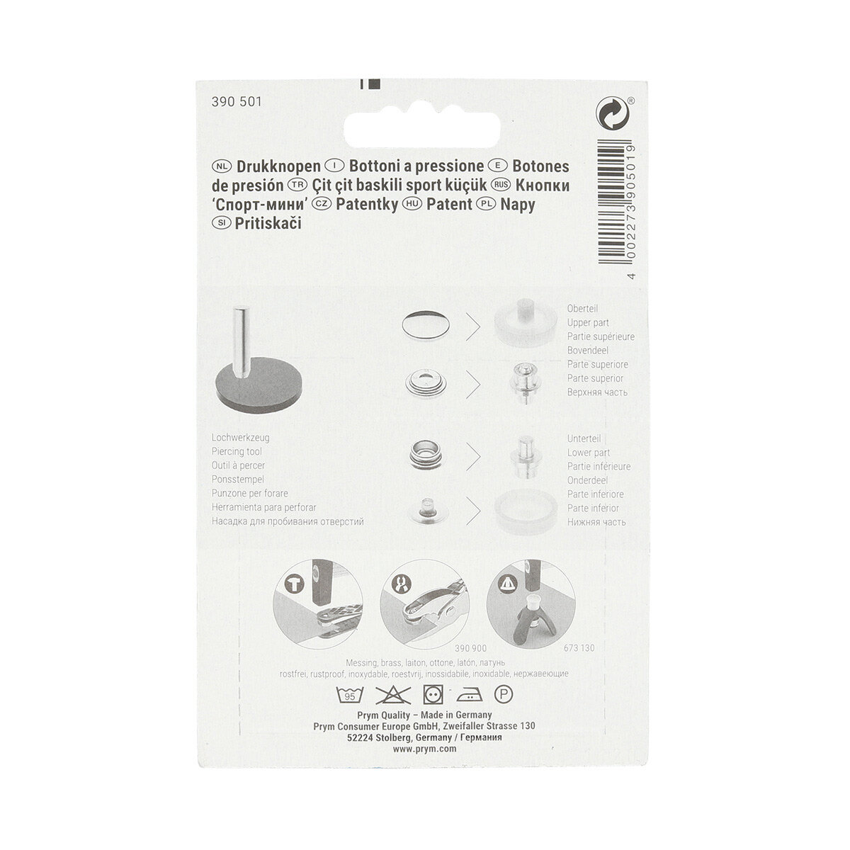 390501 Prym Кнопки "Sport-mini" серебристые 13мм