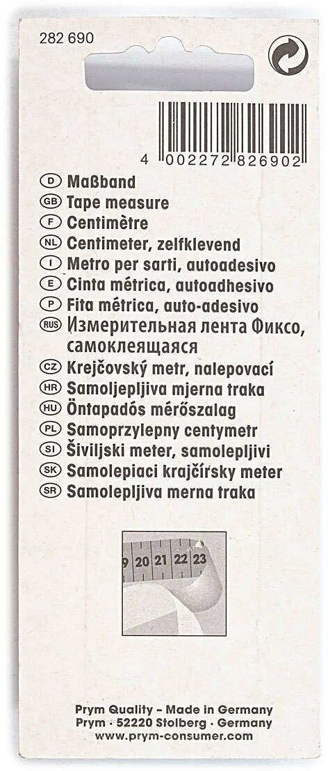 На сегодняшний день товар «282690 Prym Измерительная лента Fixo самоклеющаяся 15м в блистере» можно купить с кешбеком в 1 магазине: Яндекс.Маркет