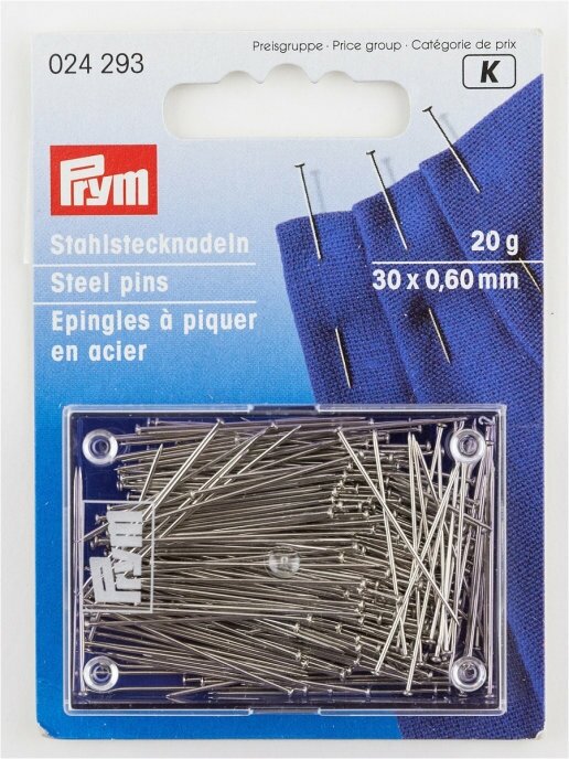 024293 Prym Булавки портновские 30*06мм 20 г закаленная сталь (банка на блистере)