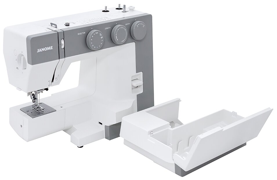 Швейная машина Janome обладает стандартным вертикальным качающимся челноком, встроенным нитевдевателем, способна выполнять 22 строчки и петлю в автоматическом режиме. Вы обязательно оцените увеличенную рабочую поверхность машины и отсек для аксессуаров, а также полужесткий тканевый чехол, который защитит машину от пыли и повреждений.