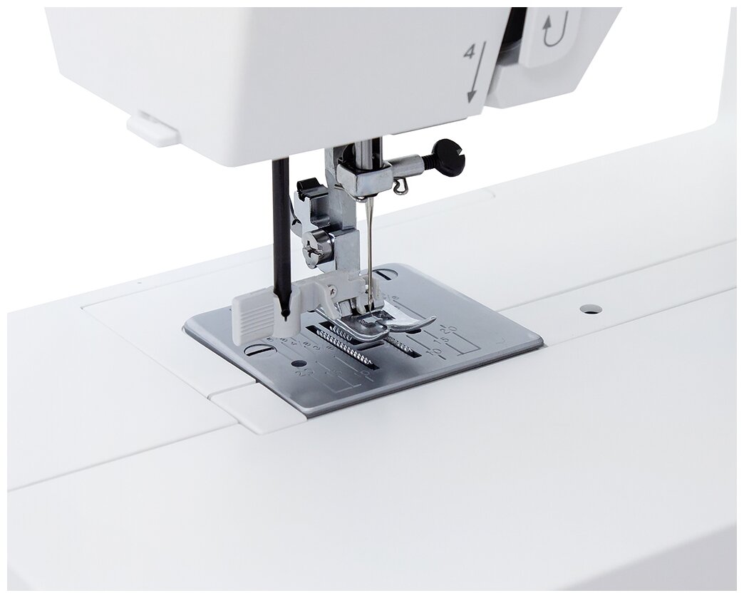 Благодаря увеличенной до 28 см рабочей поверхности, шить на этой машине будет намного удобнее (рабочая зона справа от иглы составляет 16,5 см). За счет этого также увеличен отсек для аксессуаров для удобства хранения ваших принадлежностей.