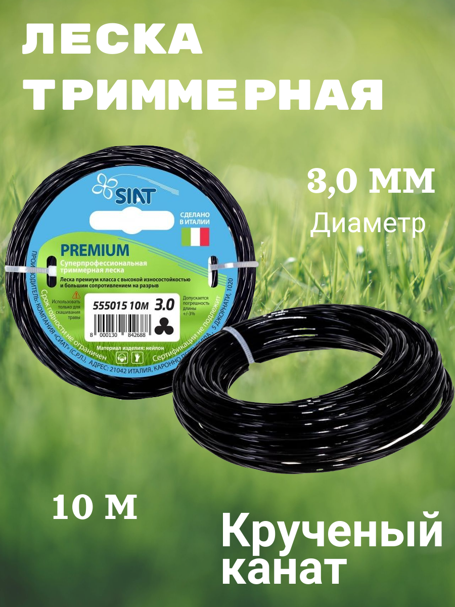 Леска SIAT является режущим материалом и используется совместно с триммерами для кошения травы. Благодаря уникальной, крученой форме,уменьшается сопротивление воздуха. Двигатель триммера быстрее развивает максимальные обороты, что увеличивает производительность. Уровень шума данной лески снижается на 50%, а так же снижается расход топлива на 30%.