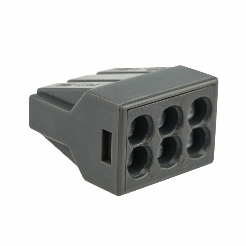 Электромонтажные экспресс-клеммы предназначены для соединения 8 проводов между собой (алюминиевые и медные как одножильные, так и многожильные). Подключение осуществляется способом проталкивания до упора очищенного от изоляции провода в свободное гнездо. Клеммы наполнены специальной контактной пастой, которая создает барьер для попадания влаги внутрь разъёма, а так же препятствует окислению проводников. Клемма имеет 8 контакта, напряжение 400 В, Максимальным током 24А,