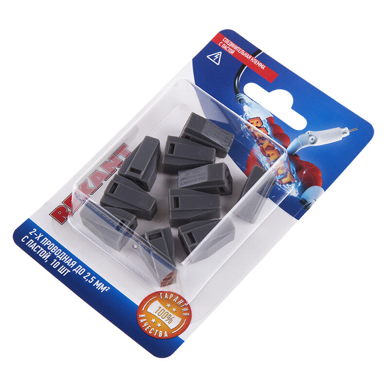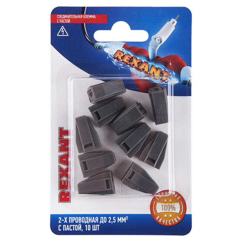 клемма соединительная 2-х проводная одноразовая (10шт) с пастой до 25мм2 24а rexant 06-0206-b10