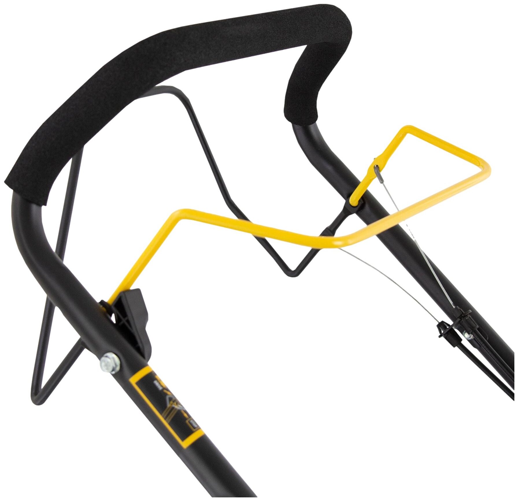- Быстрая подготовка к хранению: рукоятка косилки быстро складывается благодаря быстрозажимным эксцентриковым фиксаторам.