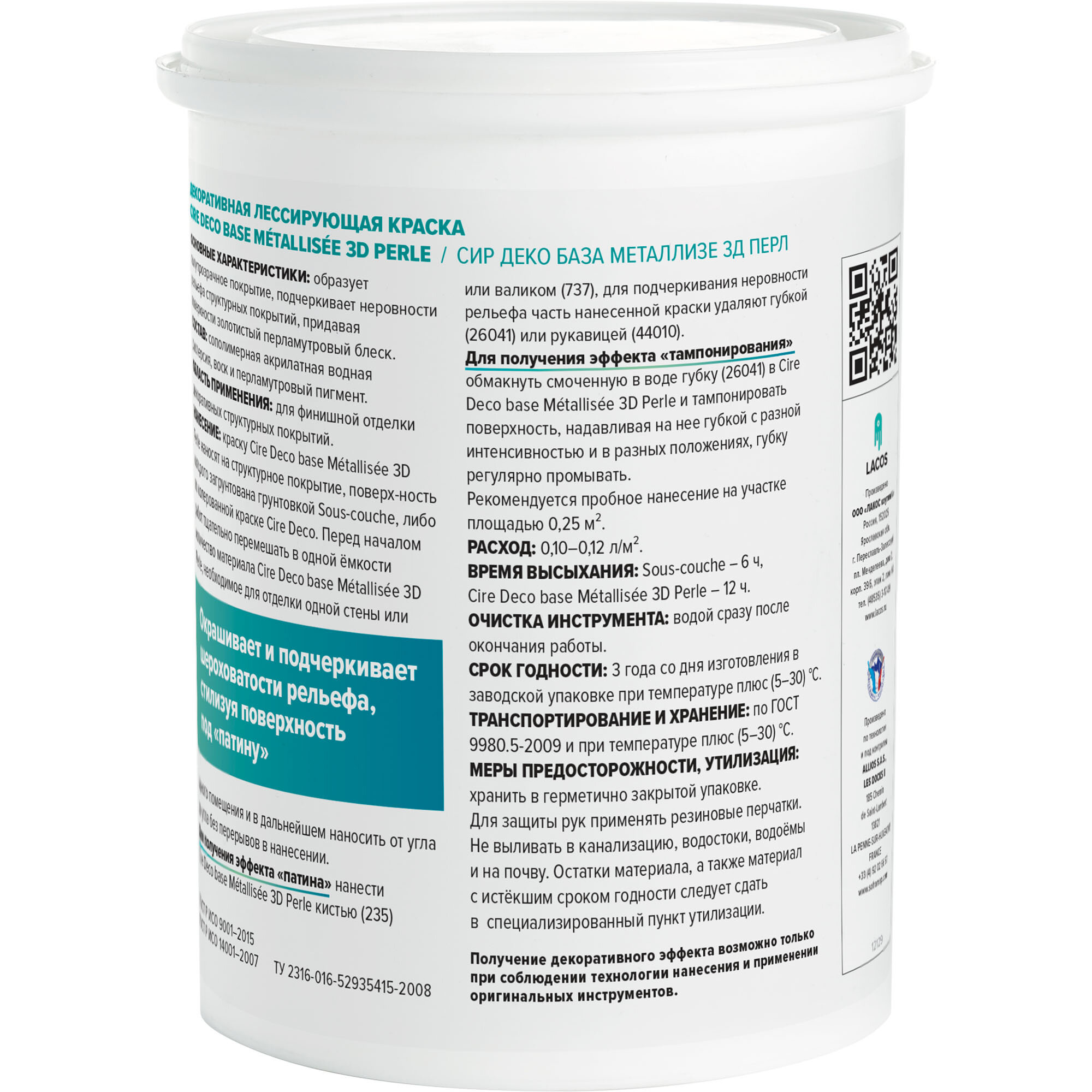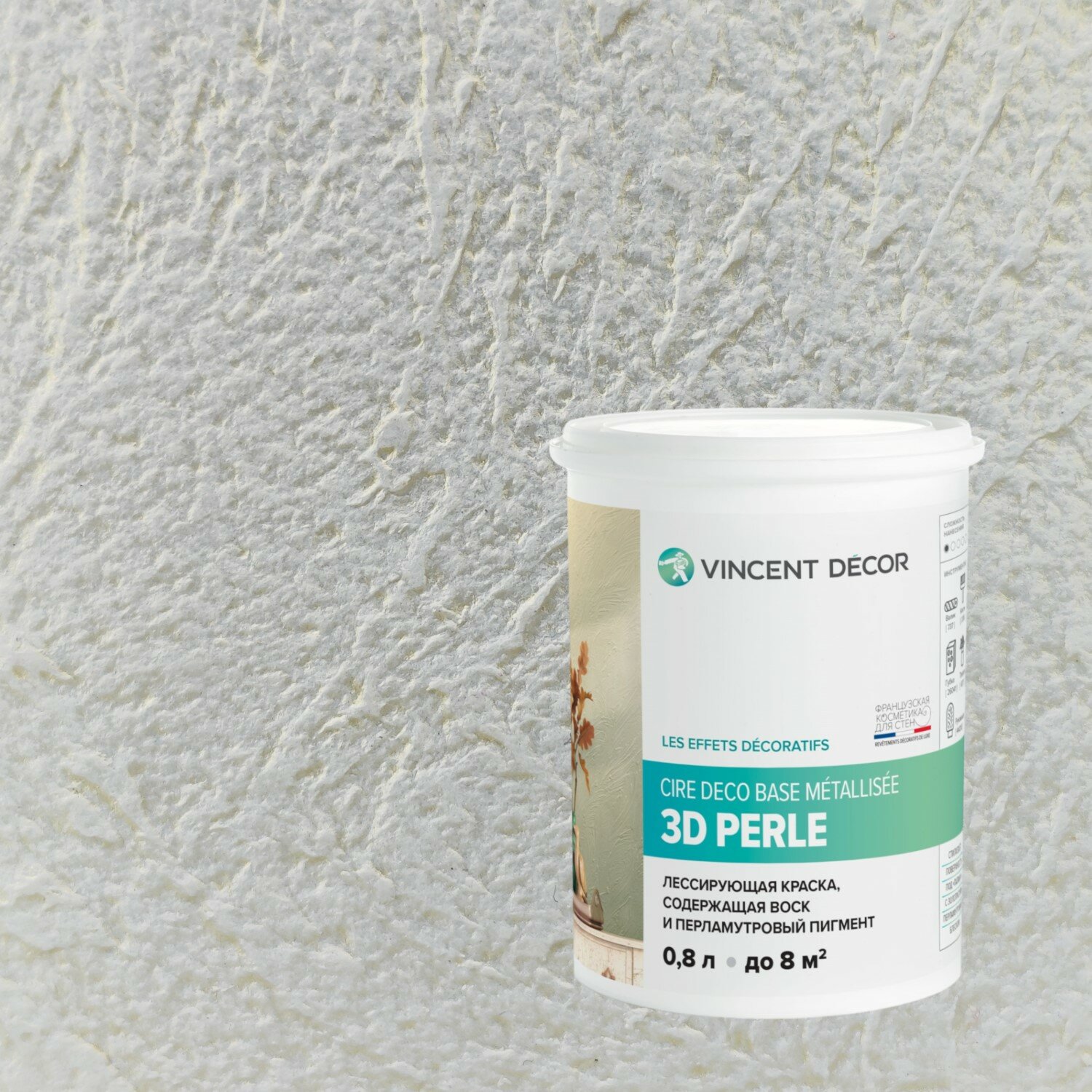 краска vincent cire deco лессирующая серебро 08л Decor Cire Deco База Металлизе Серебро,