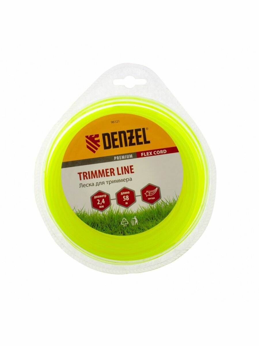 Леска Denzel Flex cord применяется в качестве режущего материала в электрических и бензиновых триммерах. Изготовлена из высококачественного нейлона с формой сечения "звезда", обладающего высокой износостойкостью. В поставку входит блистер с леской длиной 15 м и диаметром сечения 2,4 мм. За счет наличия острых граней, леска подходит для ровного скашивания травы различной жесткости, а также молодого кустарника.